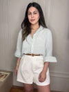 Camisa em algodão, listrada, manga longa, modelo clássico! Bem verão Europeu.