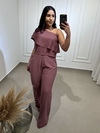 Conjunto de alfaiataria, no tecido twoway marrant, de pantalona com blusa! A pantalona é básica, cintura alta, super coringa! A blusa possui uma manga de babados e a outra de alcinha com regulagem. A blusa pode ser usada de várias formas