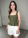 Regata em cetim, bem soltinha com detalhes em renda, decote V, com a barra assimétrica! Com alça regulável.
