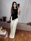 Regata em cetim, bem encorpada com detalhe de renda, bem soltinha! Com alça regulável.