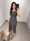 Vestido longo em poliamida, modelo super justinho, desenha o corpo (com muito elastano). Tem um detalhe na parte do quadril e fenda nas costas!